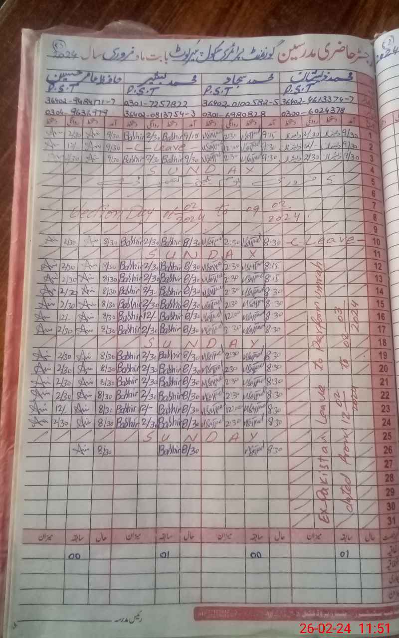 | Name: Mu**** Ze**** Designation: (School Headmaster's/Headmistress's) PST Phone/Cell Number: 03**** |
