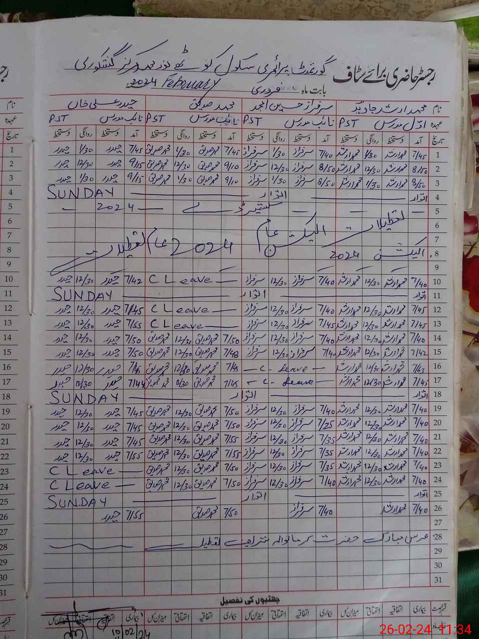 | CNIC | Full Name | Designation | R/C | Absence During Last Calender Month |