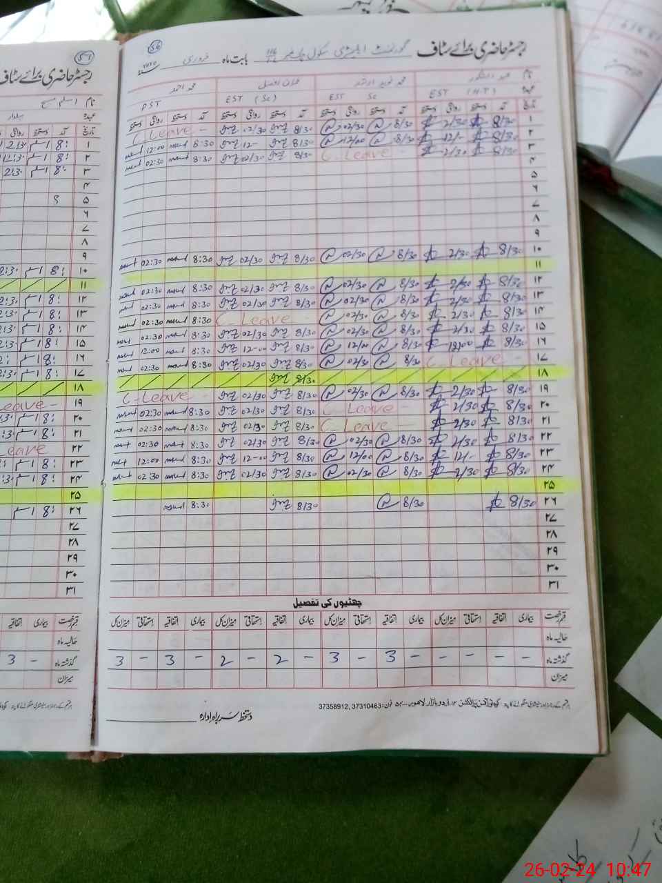 | Leave | Duty | Absent | Maternity | Medical | Ex- Pak |