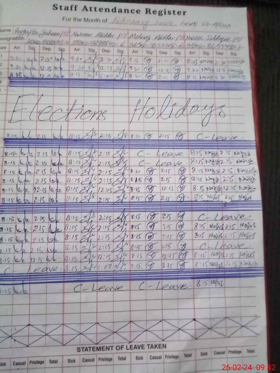| Leave | Duty | Absent | Maternity | Medical | Ex- Pak |