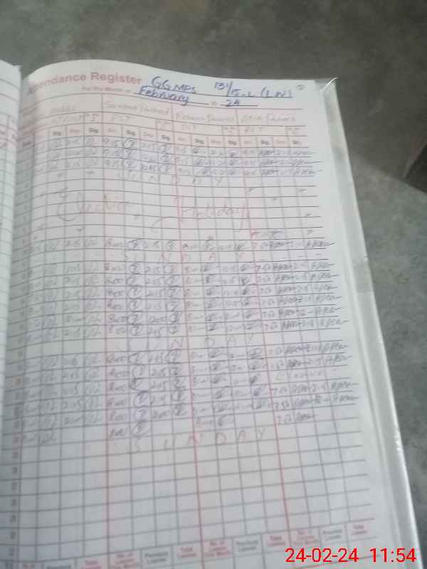 | No. of Students Present - Male | 4 | 0 | 47 | 45 | 32 | 30 | 29 | 25 | 212 | |||||||