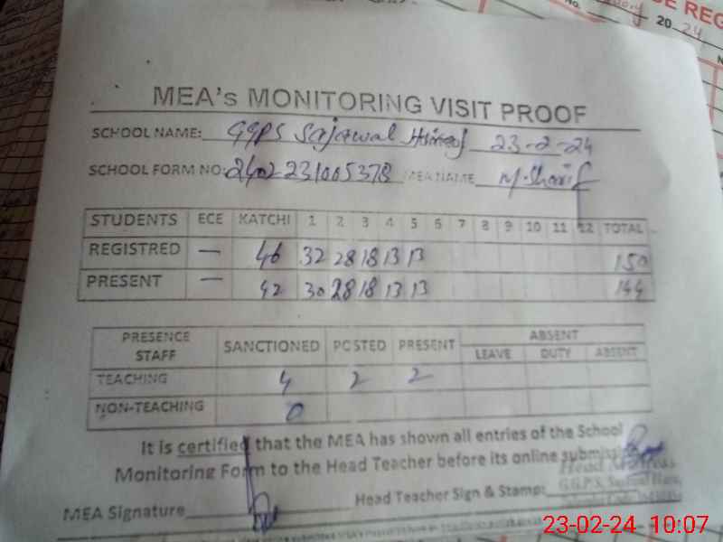 | EMIS Code: 36430354 | Name of School: GGPS SAJAWAL HERAJ, TULUMBA | |||