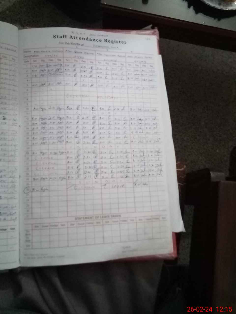 | Leave | Duty | Absent | Maternity | Medical | Ex- Pak |
