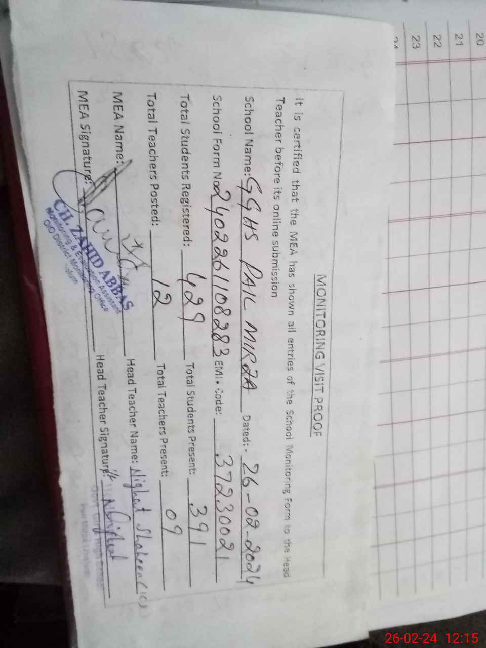 | EMIS Code: 37230021 | Name of School: GGHS PAIL MIRZA | |||