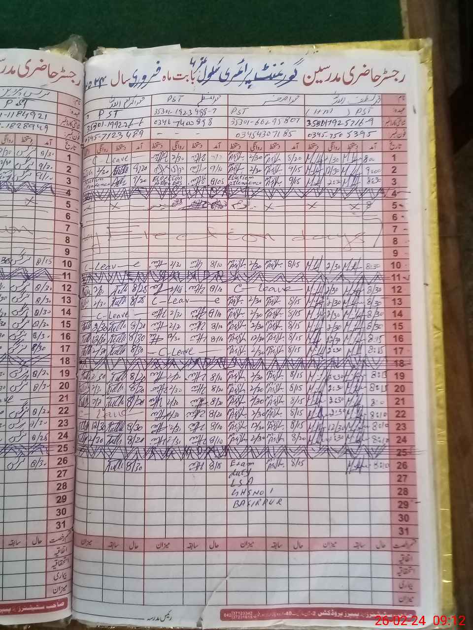 | 35**** | Mu**** As**** | 1 | 1 | 0 | 0 | 0 | 0 | 0 | 0 | 0 | 0 | 0 | Exam Duty |