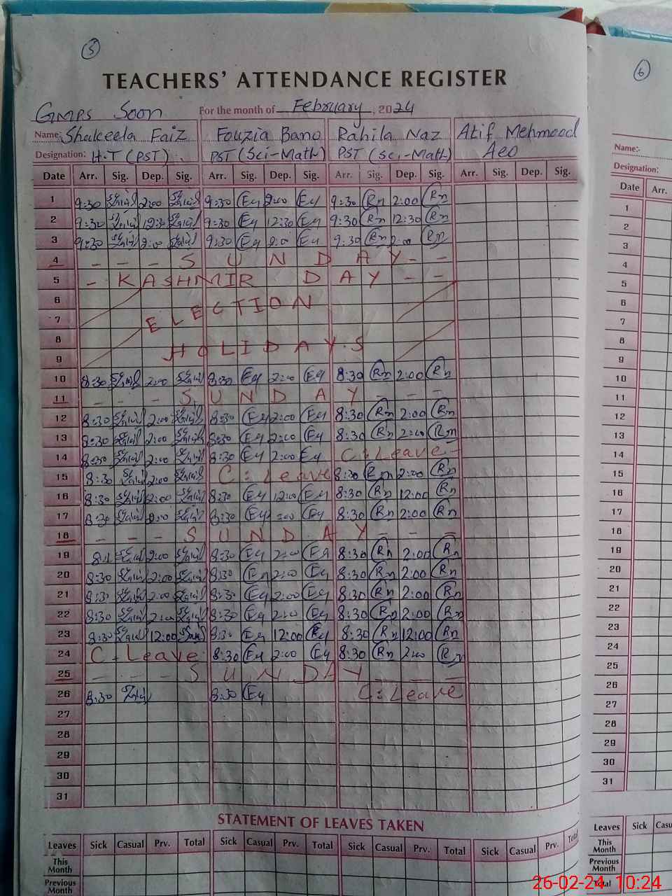 | Leave | Duty | Absent | Maternity | Medical | Ex- Pak |