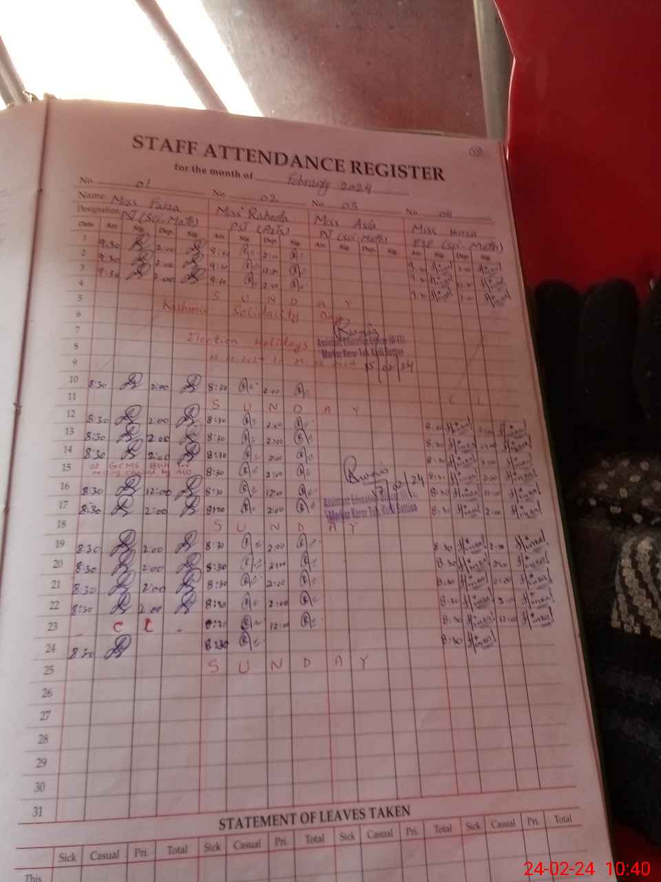 | Remarks (Use Separate Page if Required): Teacher Hinza Hafeez not tage on sis she is present in school Nsb not updated on sis | |||||