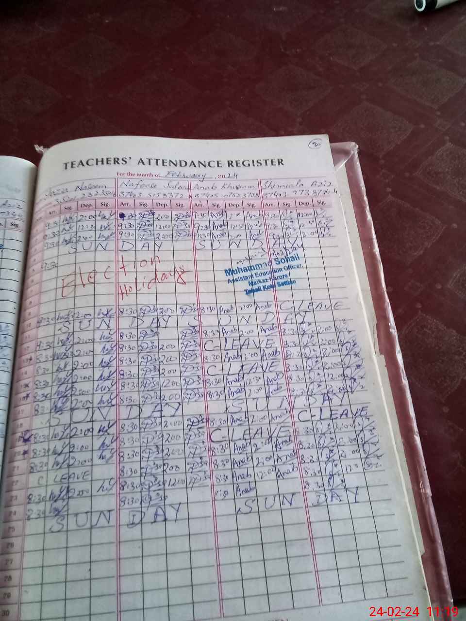 | Name: SH**** NA**** Designation: (School Headmaster's/Headmistress's) PST Phone/Cell Number: 03**** |