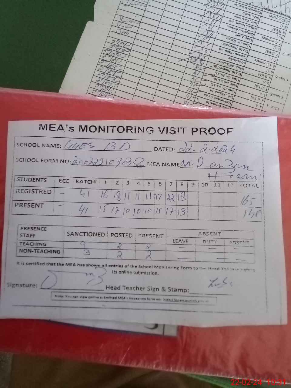 | EMIS Code: 36410141 | Name of School: GGES 13/D, ABDUL HAKIM | |||