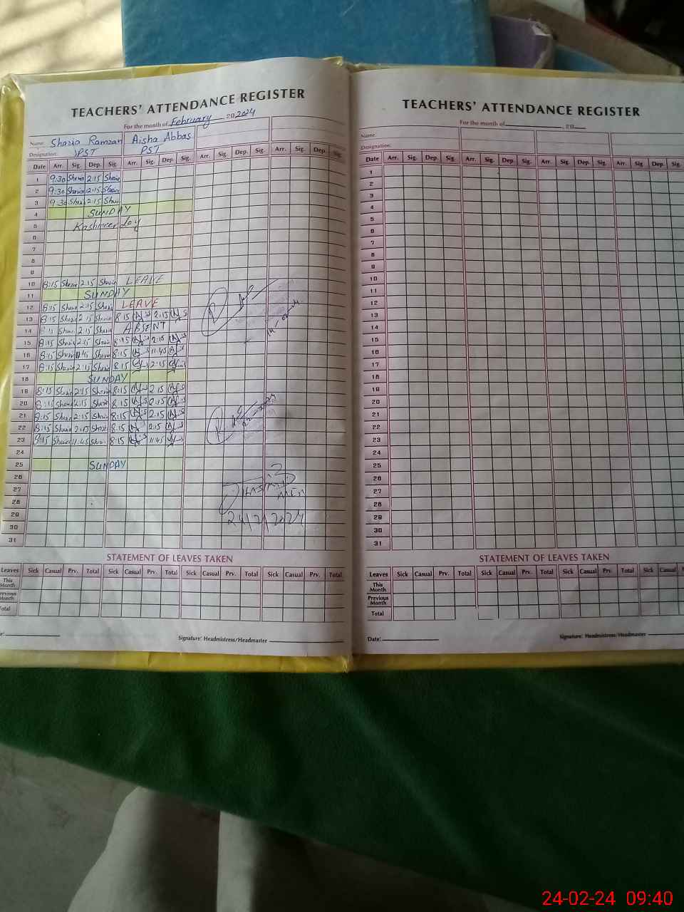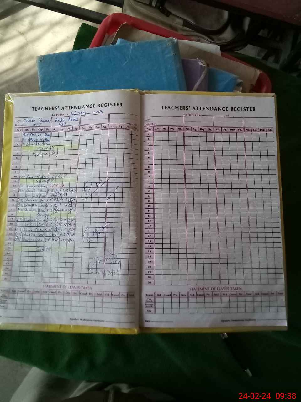| 36**** | Ai**** Ab**** | 1 | 1 | 0 | 0 | 0 | 0 | 0 | 0 | 0 | 0 | 0 | Absent (Un-Authorized) |