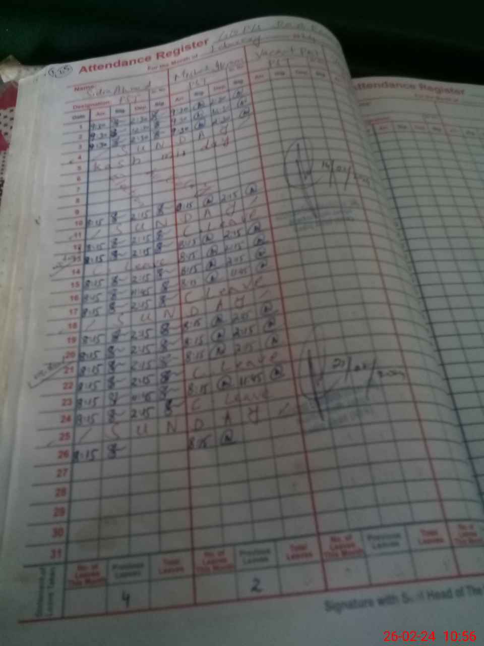 | CNIC | Full Name | Designation | R/C | Absence During Last Calender Month |