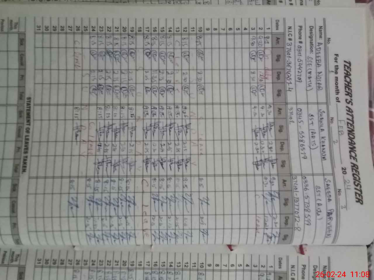 | Name: AD**** NI**** Designation: (School Headmaster's/Headmistress's) SSE. MATH I C HM Phone/Cell Number: 03**** |