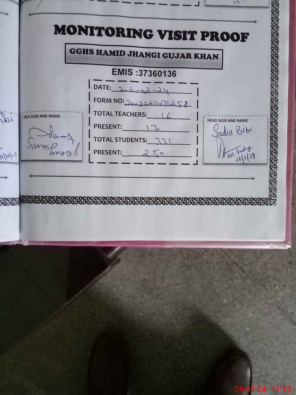 | EMIS Code: 37360136 | Name of School: GGHS HAMID JHANGI | |||