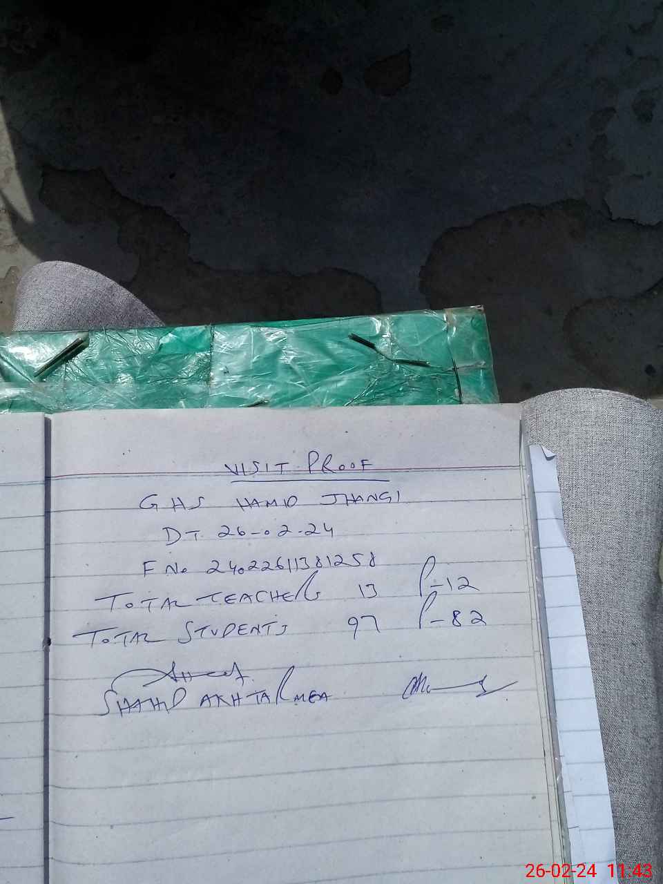 | Attendance Register | Head Teacher | MEA with School | Visit Proof |
