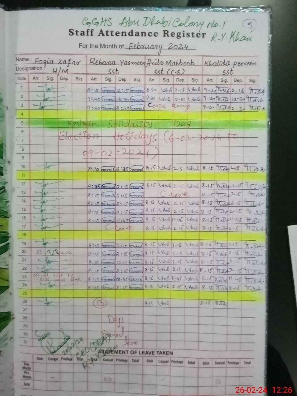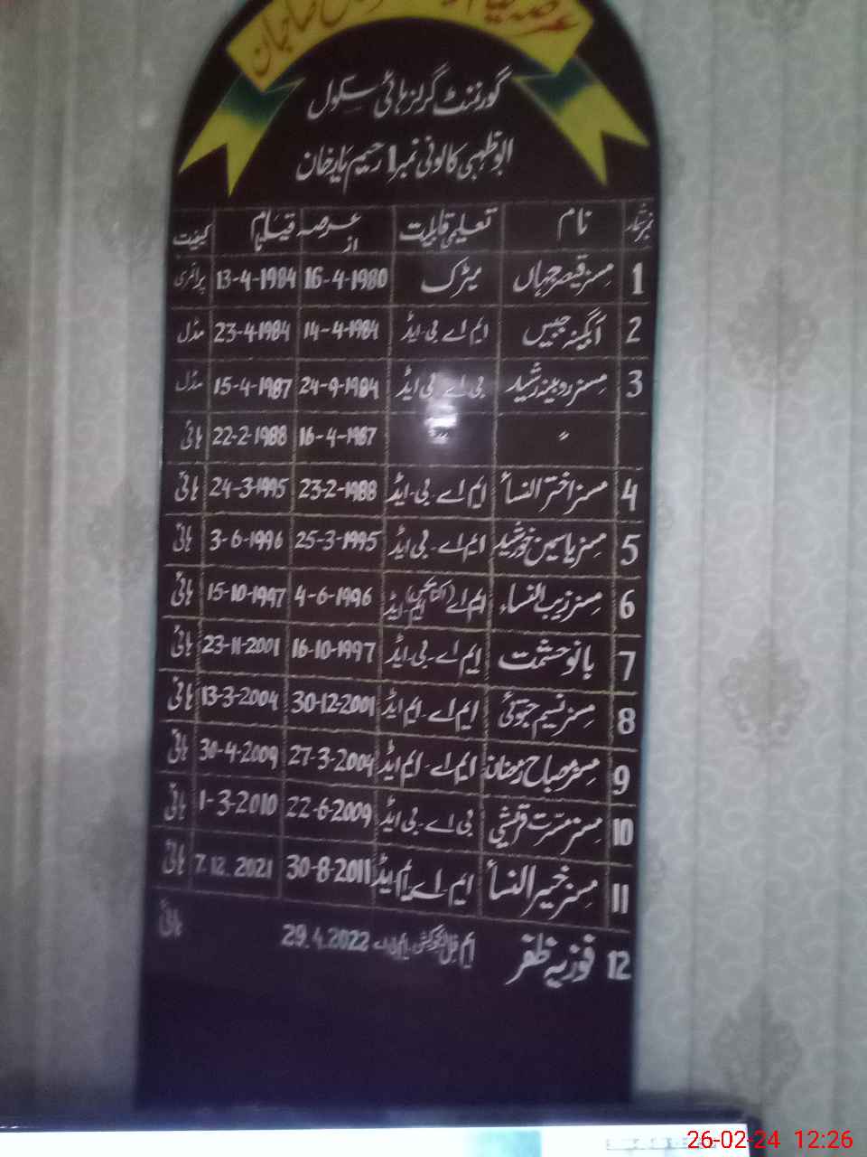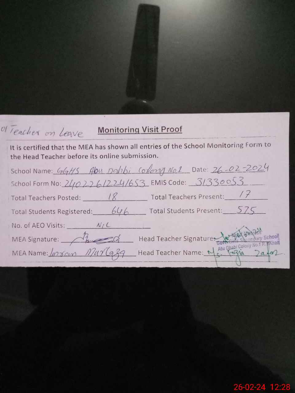 | EMIS Code: 31330053 | Name of School: GGHS ABU ZAHBI COLONY NO 1 | |||