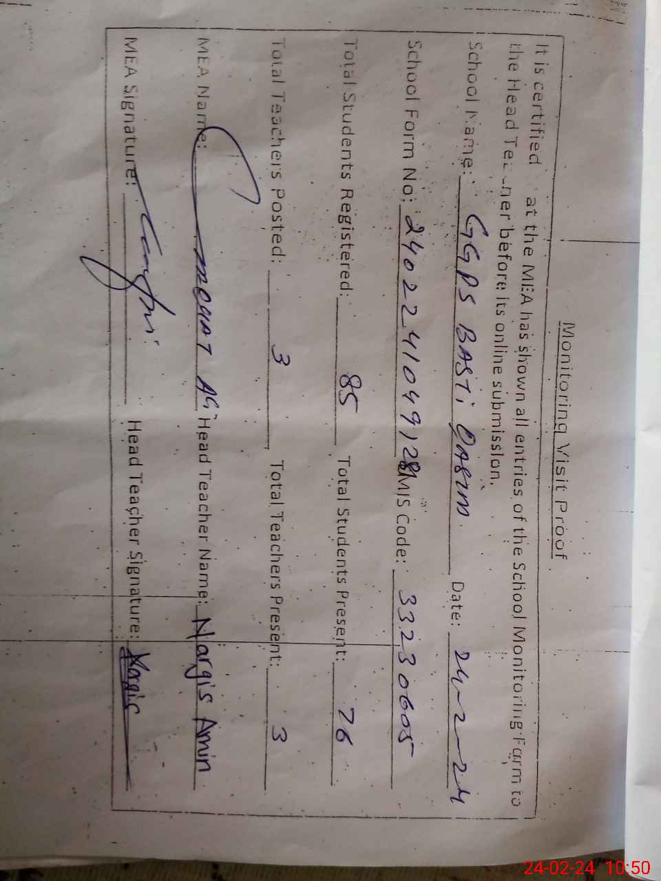| EMIS Code: 33230605 | Name of School: GGPS BASTI QASIM ALI SHAH | |||