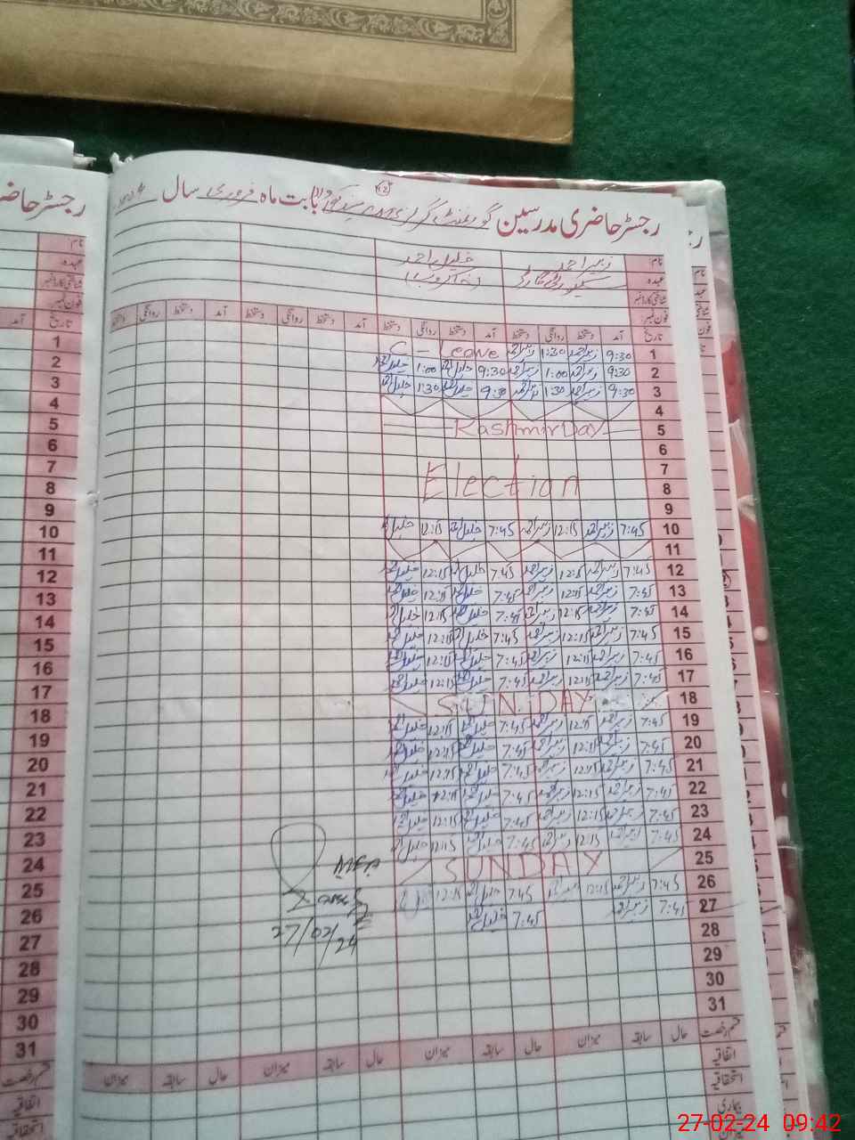 | CNIC | Full Name | Designation | R/C | Absence During Last Calender Month |