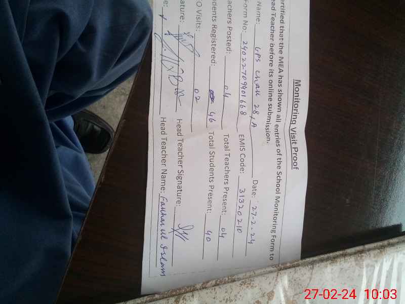 | EMIS Code: 31320210 | Name of School: GPS CHAK 28 A | |||