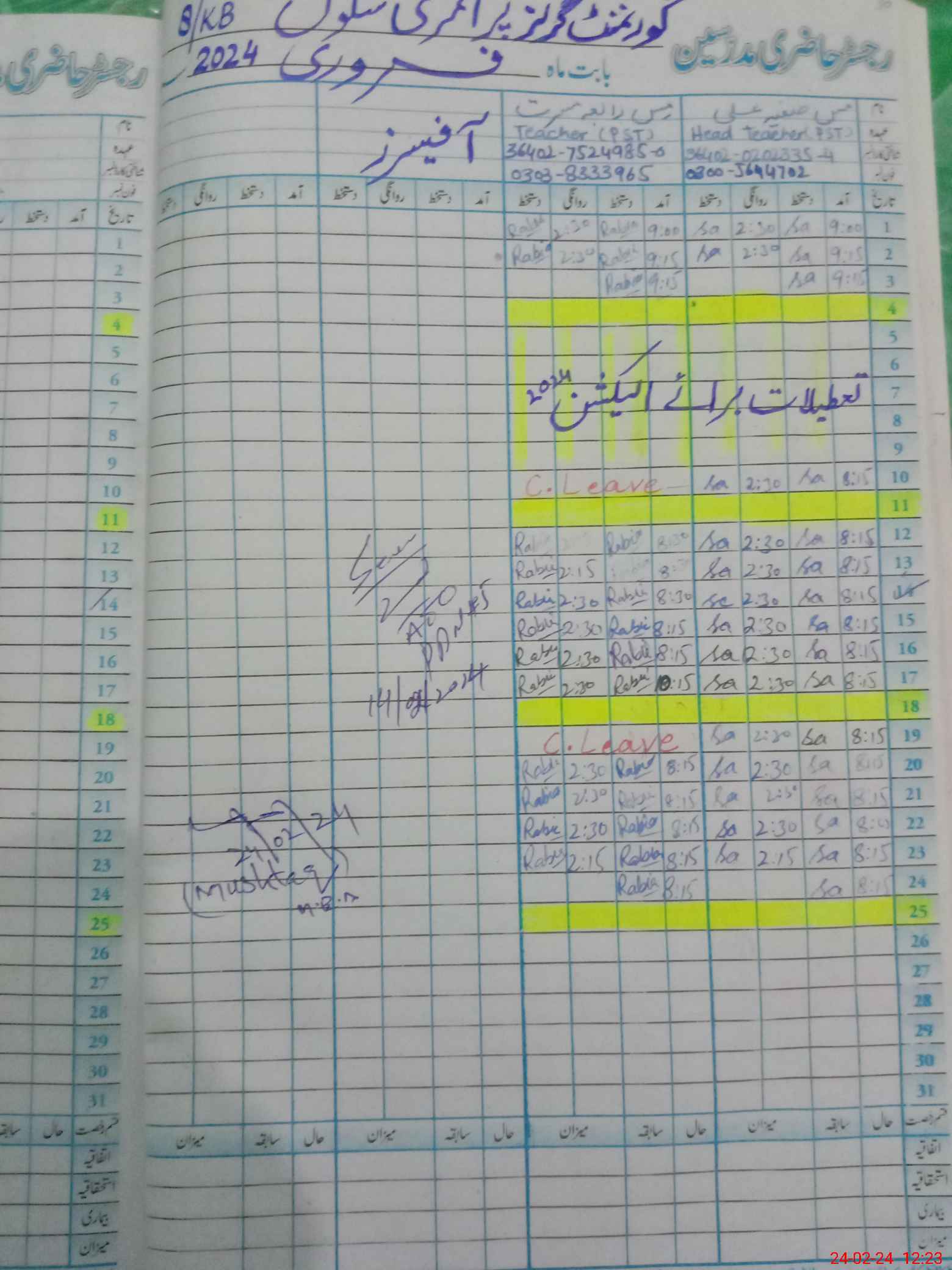 | Name: SA**** AL**** Designation: (School Headmaster's/Headmistress's) PST Phone/Cell Number: 03**** |