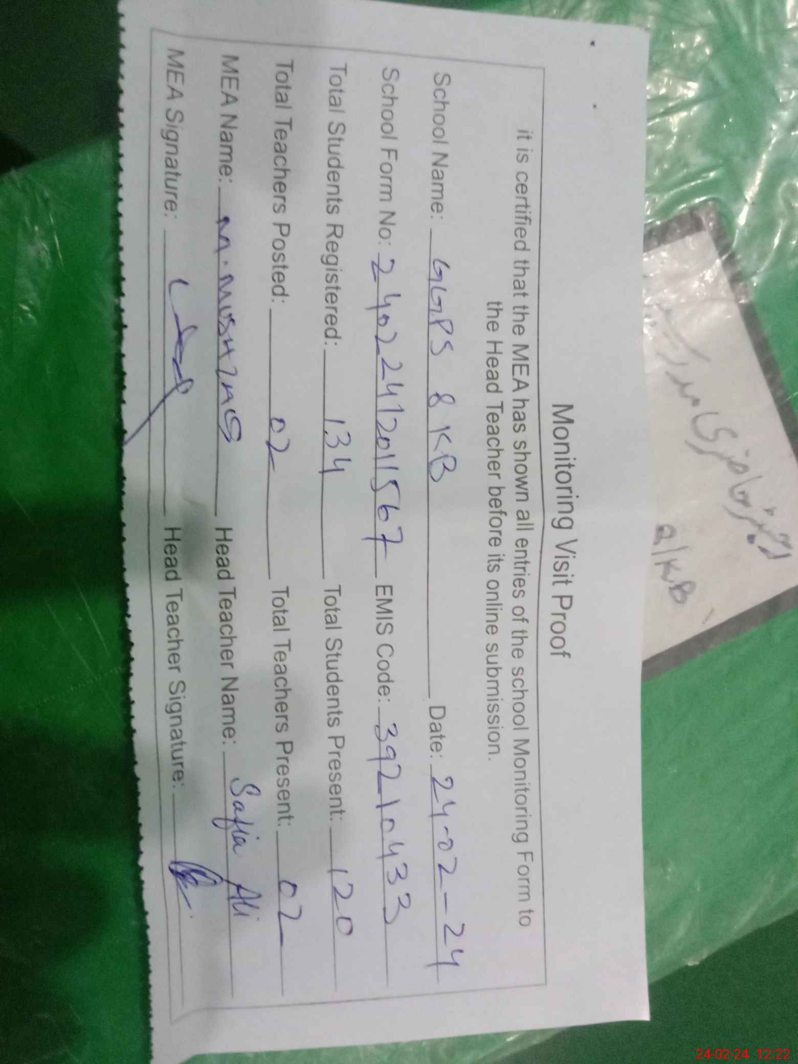 | EMIS Code: 39210433 | Name of School: GGPS CHAK 8 KB | |||