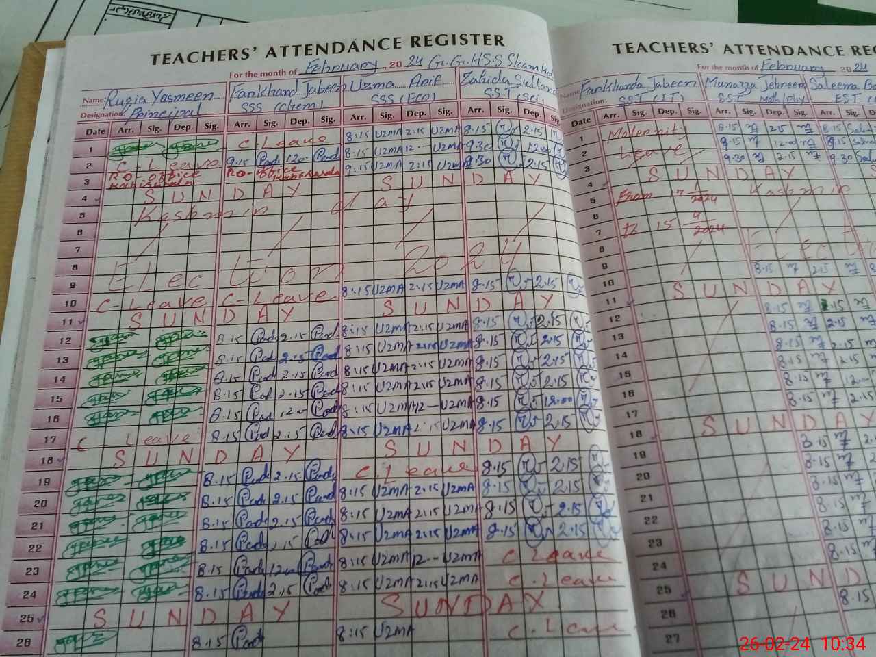 | Leave | Duty | Absent | Maternity | Medical | Ex- Pak |