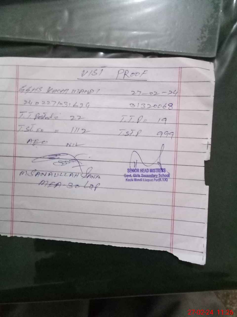 | Monitoring Date: 27-02-2024 | Start Time: 27-02-2024 10:31 AM | End Time: 27-02-2024 11:50 AM | Name of MEA: Mu**** Sa**** Ul**** Sa**** | |