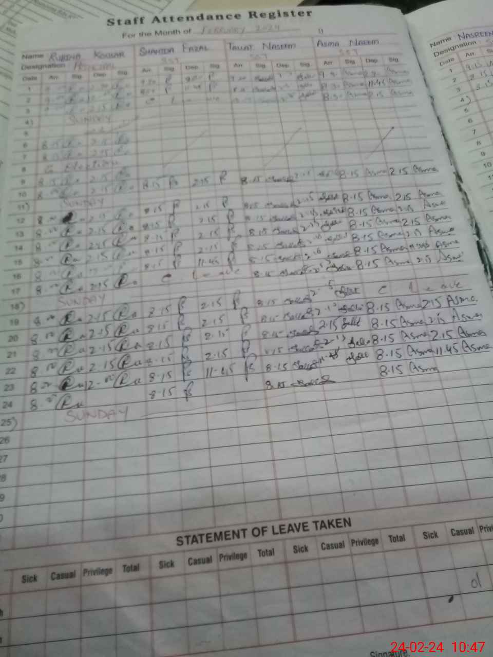 | Leave | Duty | Absent | Maternity | Medical | Ex- Pak |