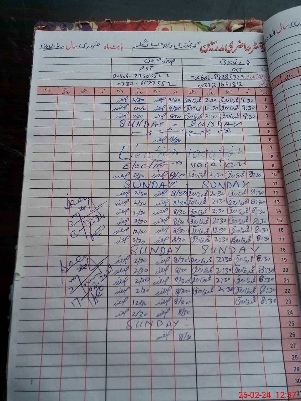 | Name: Mu**** Fa**** Designation: (School Headmaster's/Headmistress's) PST Phone/Cell Number: 03**** |