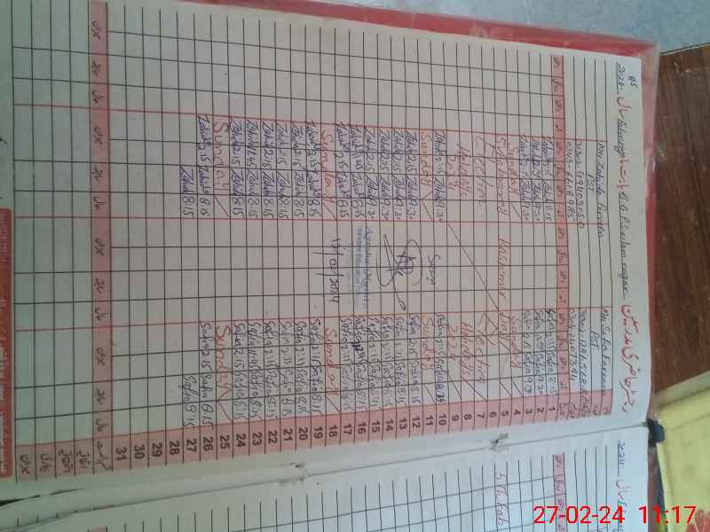 | CNIC | Full Name | Designation | R/C | Absence During Last Calender Month |