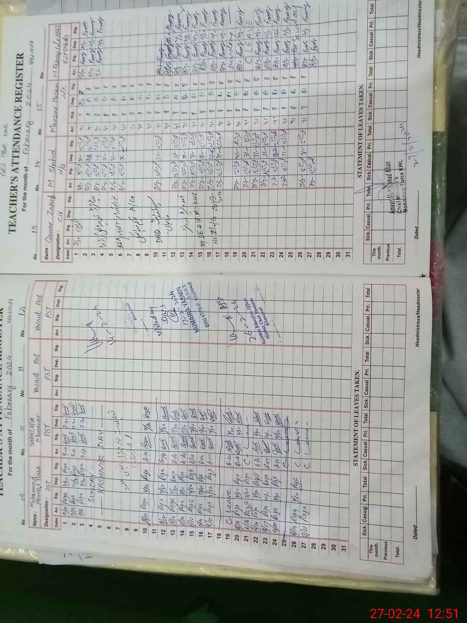 | No. of Students Present - Male | 14 | 0 | 37 | 42 | 27 | 26 | 47 | 42 | 38 | 30 | 37 | 340 | ||||