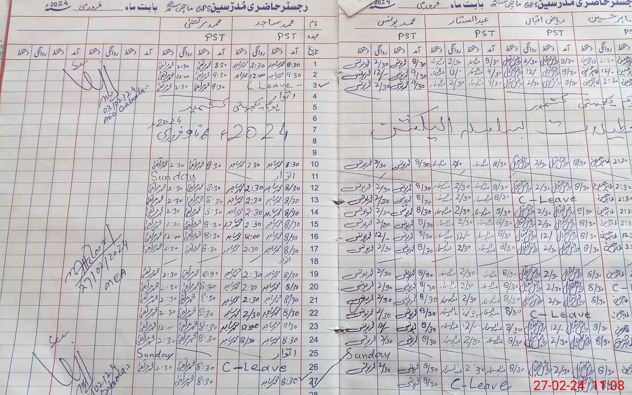 | Name: MU**** SA**** Designation: (School Headmaster's/Headmistress's) PST Phone/Cell Number: 03**** |