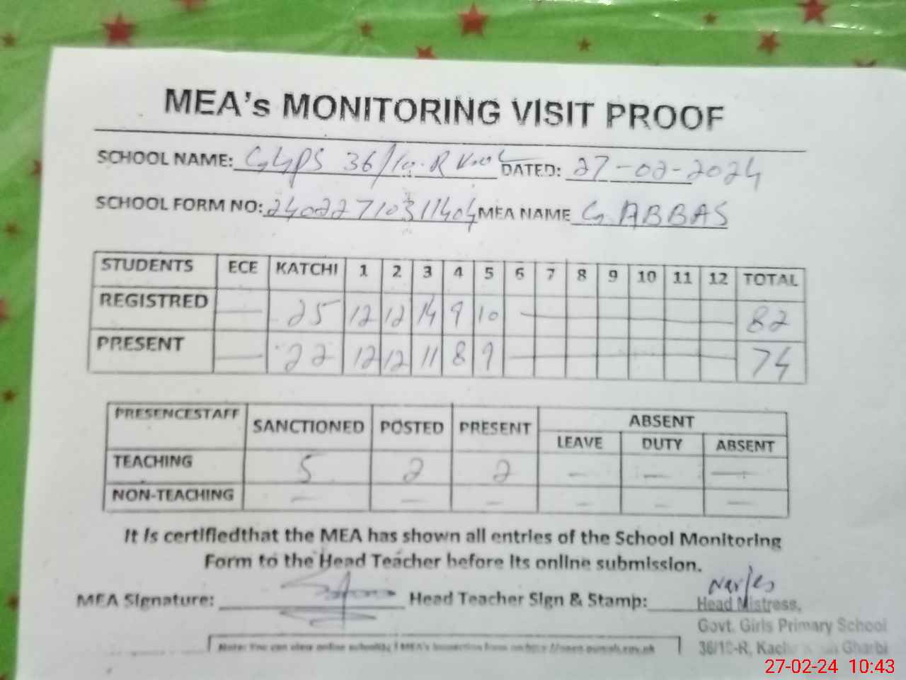 | EMIS Code: 36420474 | Name of School: GGPS 36/10-R, KACHA KHUH | |||