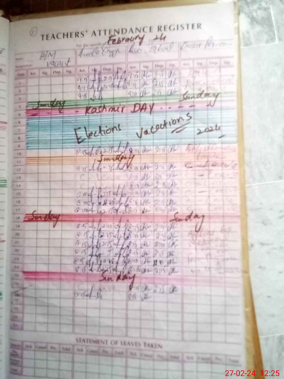 | Leave | Duty | Absent | Maternity | Medical | Ex- Pak |