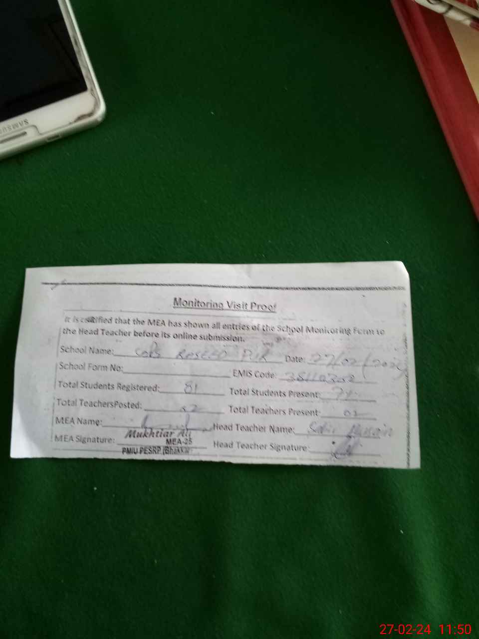 | EMIS Code: 38110300 | Name of School: GPS RASEED PUR | |||