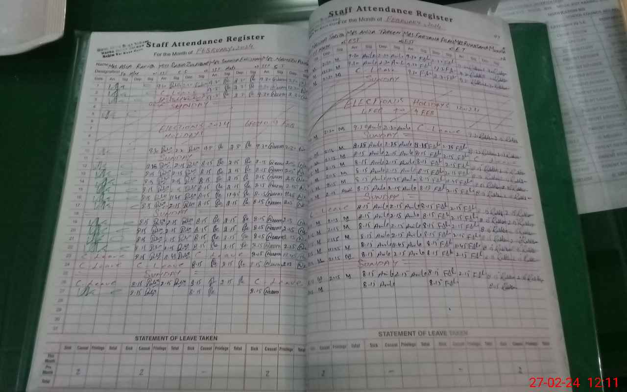 | CNIC | Full Name | Designation | R/C | Absence During Last Calender Month |