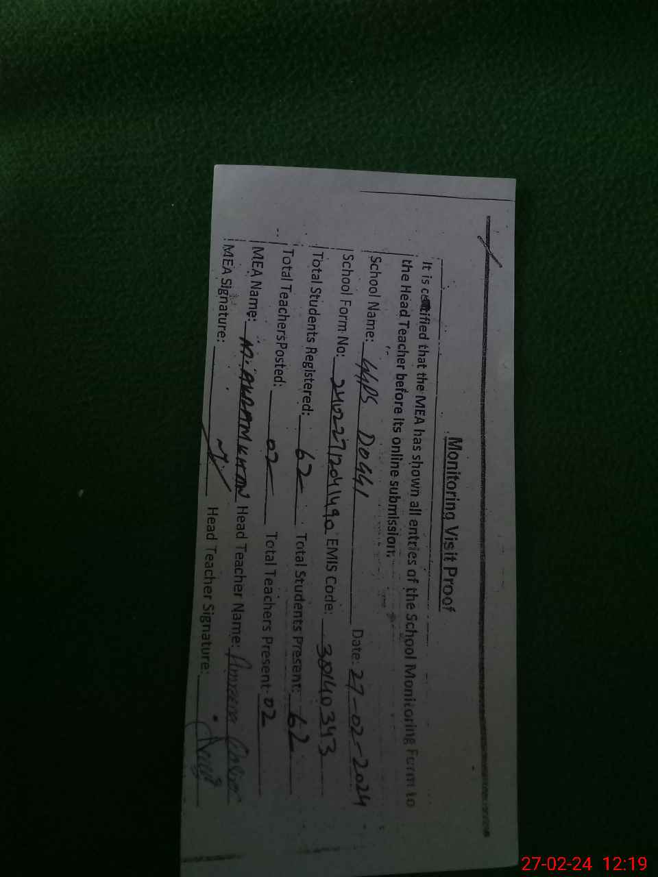 | Certified that this School was Inspected by the Undersigned MEA/DMO Today and the Information Stated Above is as Per Record. | |||||