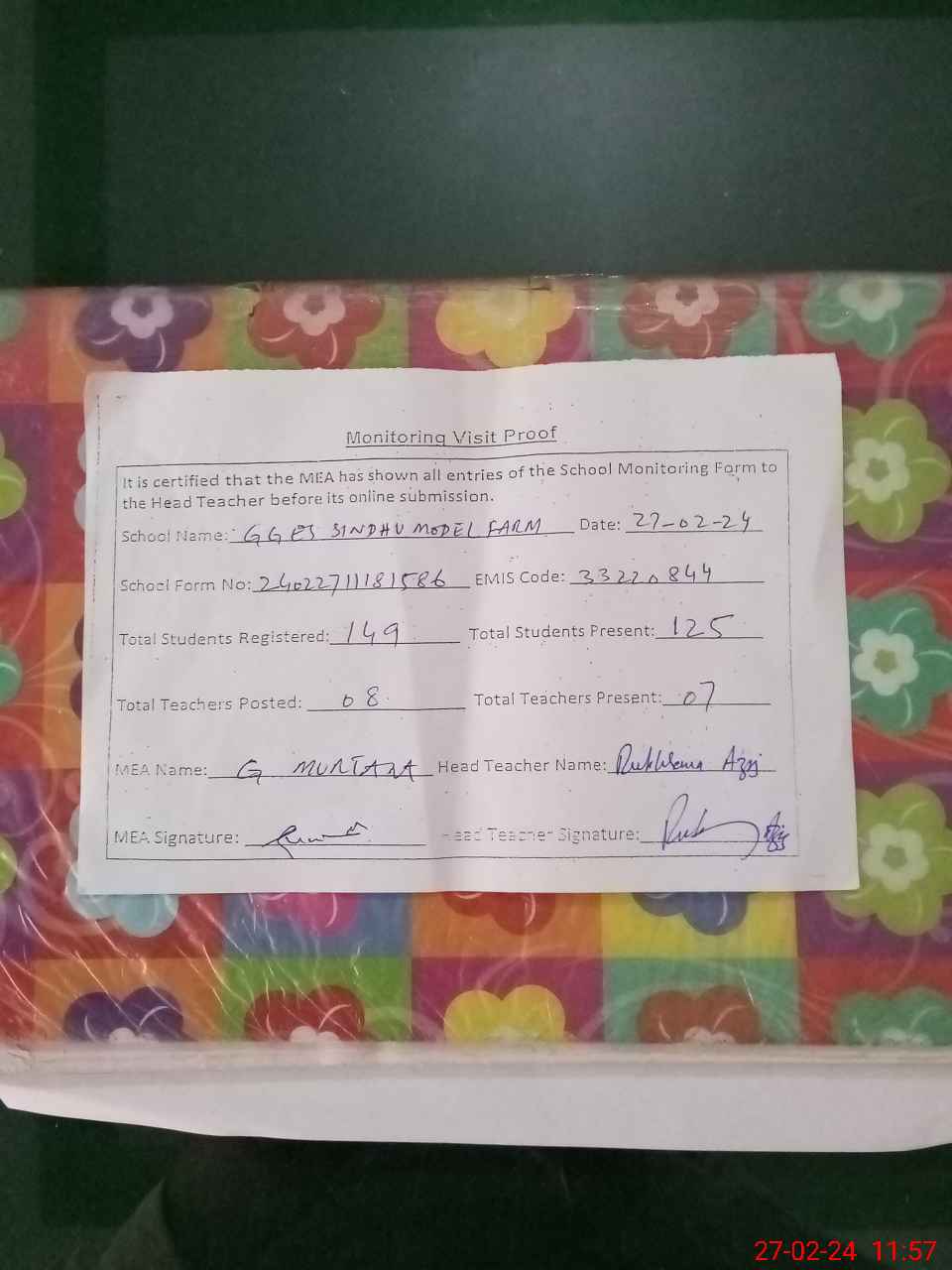 | Certified that this School was Inspected by the Undersigned MEA/DMO Today and the Information Stated Above is as Per Record. | |||||