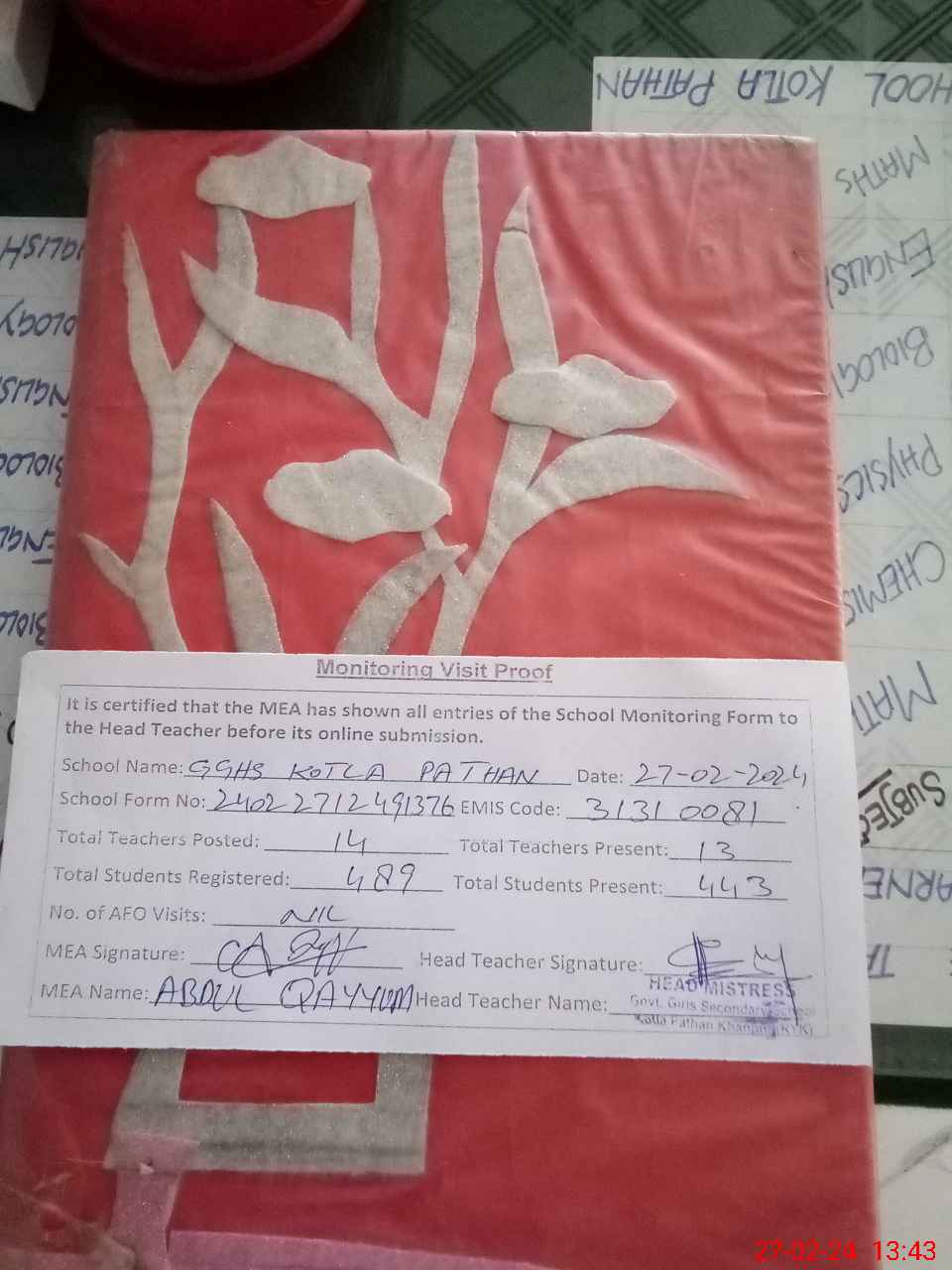 | EMIS Code: 31310081 | Name of School: GGHS KOTLA PATHAN | |||