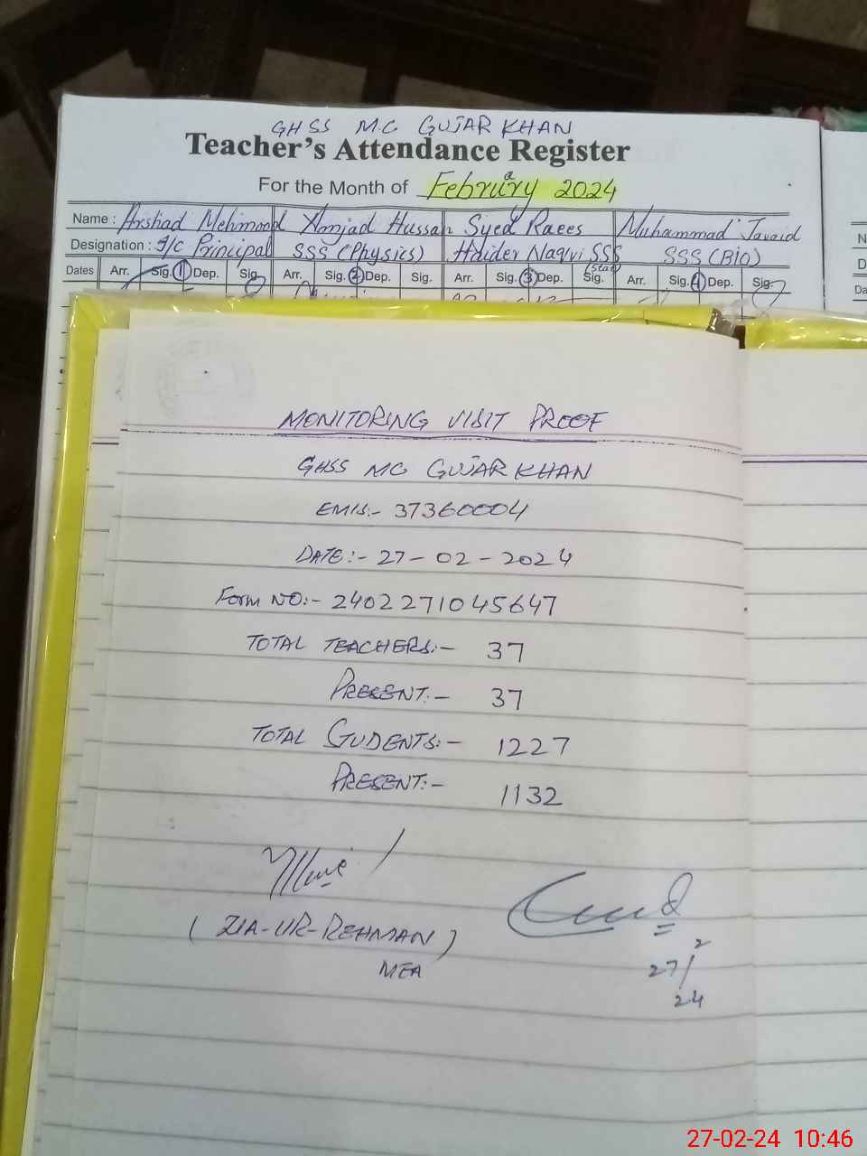 | EMIS Code: 37360004 | Name of School: GHSS MC GUJAR KHAN | |||