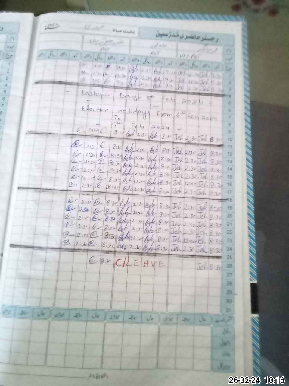 | Leave | Duty | Absent | Maternity | Medical | Ex- Pak |