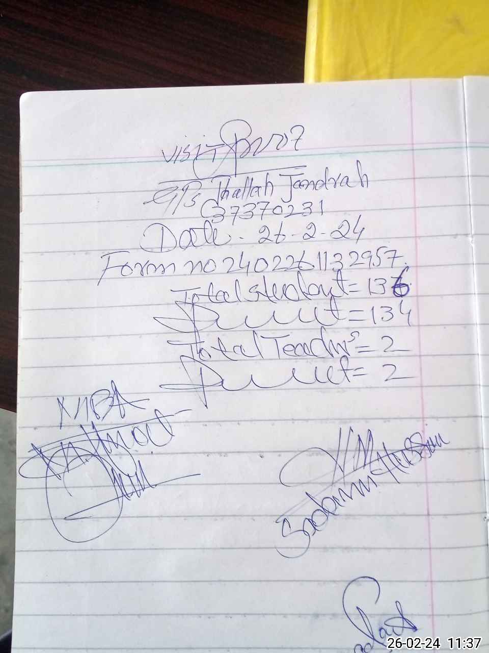| Attendance Register | Head Teacher | MEA with School | Visit Proof |