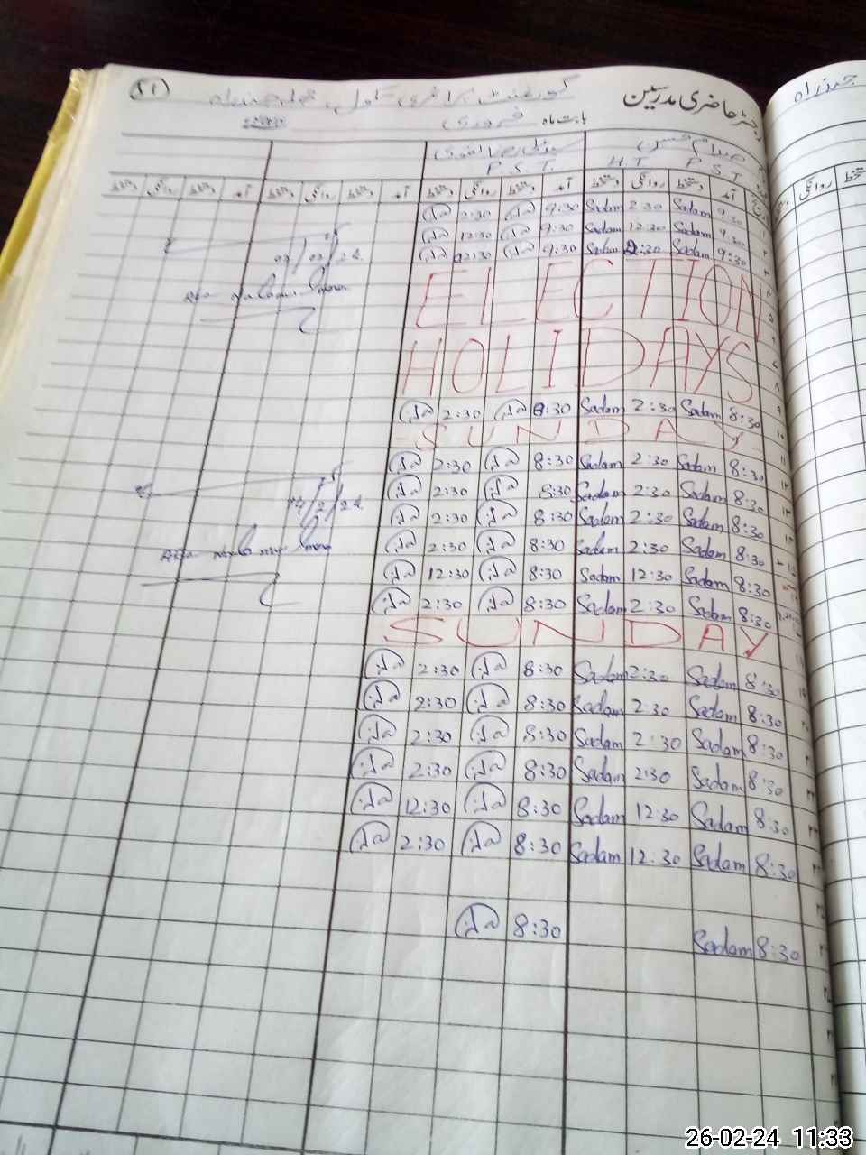 | CNIC | Full Name | Designation | R/C | Absence During Last Calender Month |