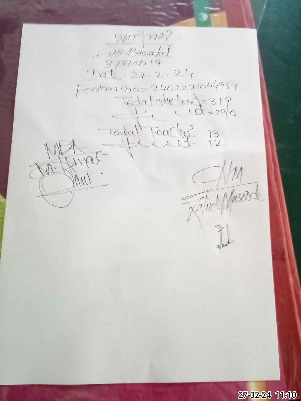 | Attendance Register | Head Teacher | MEA with School | Visit Proof |