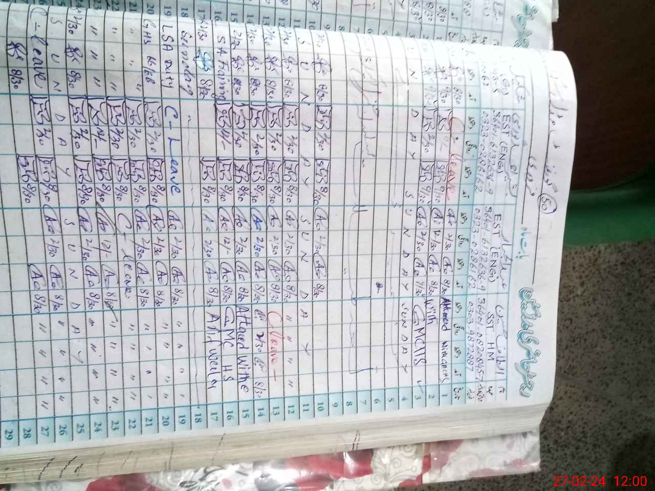 | Leave | Duty | Absent | Maternity | Medical | Ex- Pak |