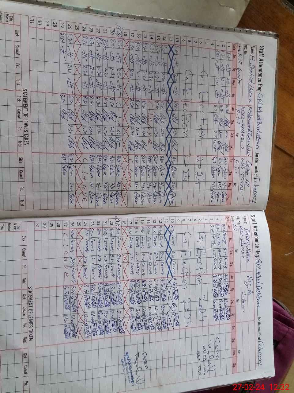 | CNIC | Full Name | Designation | R/C | Absence During Last Calender Month |
