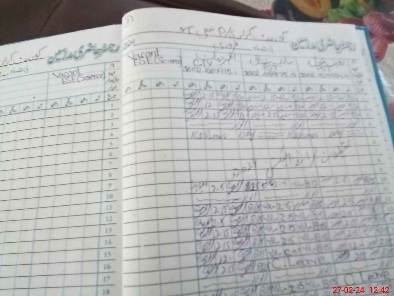 | CNIC | Full Name | Designation | R/C | Absence during last cal. month |