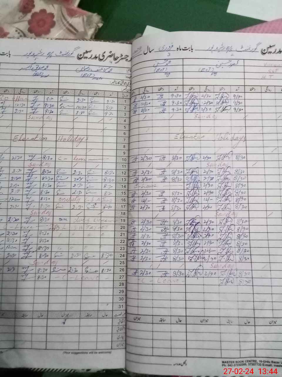 | 33**** | Mu**** Ha**** | Regular | 0 | 2 | 0 | 0 | 0 | 0 | 0 | 0 | 0 | Casual | |