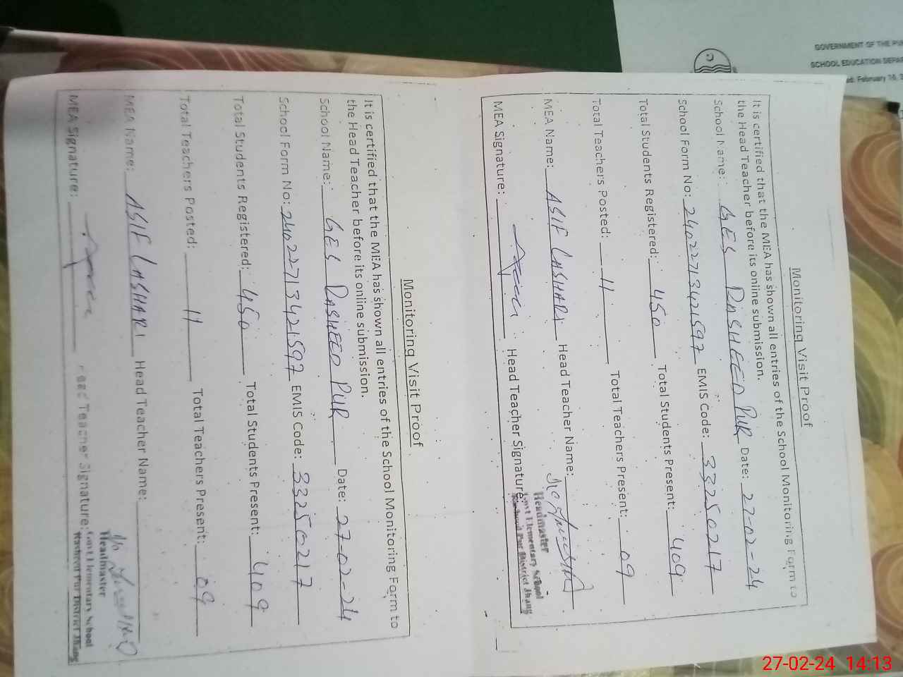 | EMIS Code: 33250217 | Name of School: GES RASHEED PUR | |||