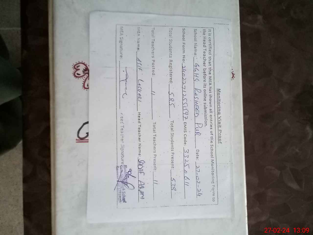 | EMIS Code: 33250611 | Name of School: GGHS RASHEED PUR | |||