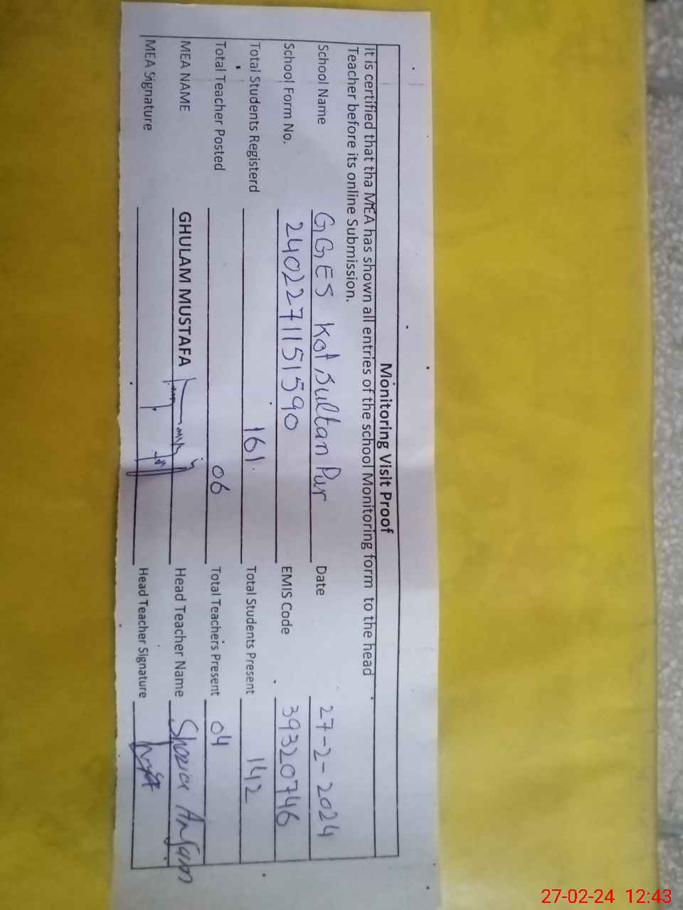 | EMIS Code: 39320746 | Name of School: GGES KOT SULTAN PUR | |||
